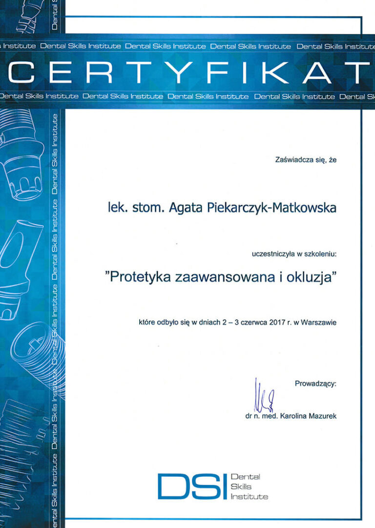 Specjalista stomatologii estetycznej, protetyki oraz leczenia zaburzeń stawu skroniowo - żuchwowego