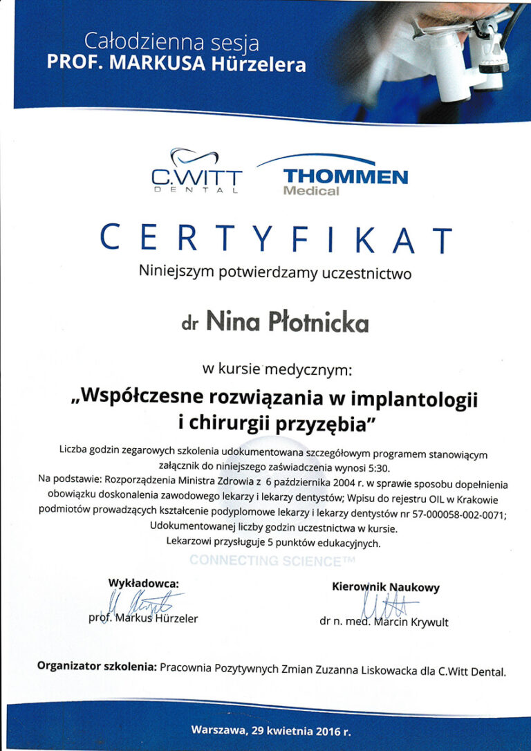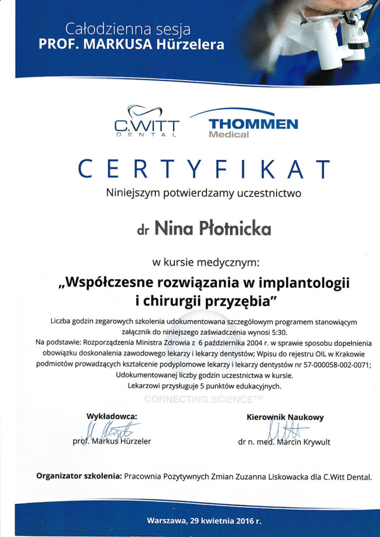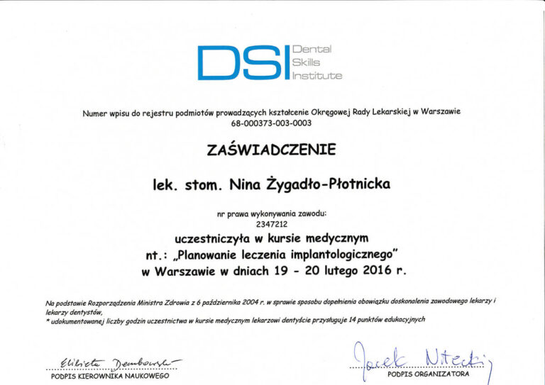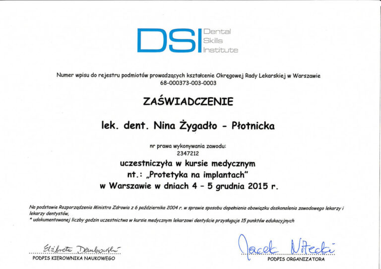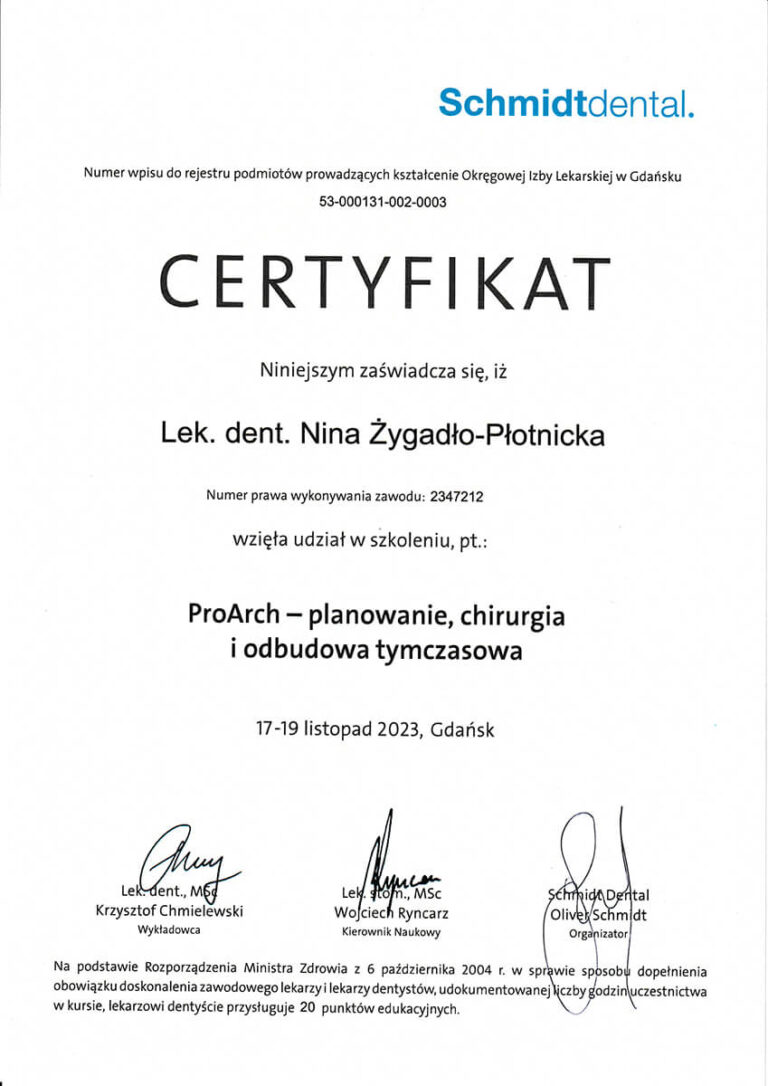 Jestem absolwentką Wydziału Lekarsko-Stomatologicznego Akademii Medycznej we Wrocławiu oraz specjalistką w dziedzinie chirurgii stomatologicznej. Moja pasja i doświadczenie koncentrują się na zabiegach z zakresu chirurgii oraz implantologii.